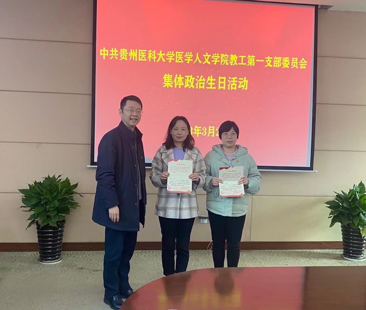 会上,刘文为过“政治生日”的薛鸿、周允送上生日祝福及“政治生日贺卡”,转达党组织诚挚的祝福以及希望和鞭策。薛鸿和周允分别讲述了自己的政治生日感言。活动中,教工第一党支部书记李晓辉带领全体参会党员集体重温了入党誓词。在鲜红的党旗下,党员们庄严地举起右手,握拳宣誓,重温入党誓词。